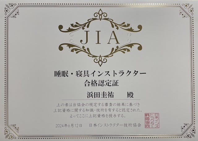 と同時に、私個人としては「睡眠・寝具インストラクター」の資格を持つ専門家でもあります。