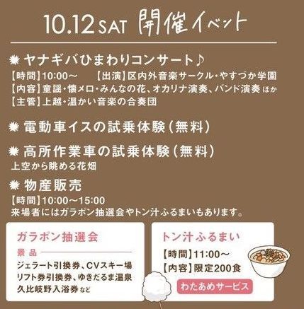 10月は安塚区で行われる2024・第11回黄金の回廊「ヤナギバひまわりin安塚」にて10月12日に試乗体験を実施予定です。安塚の皆さんにお招き頂くことになりました。感謝申し上げます。