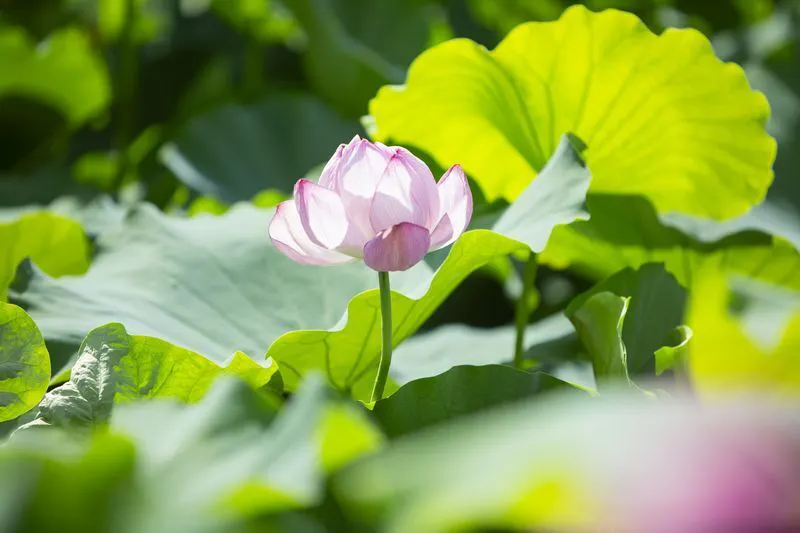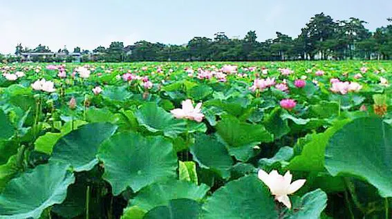夏には蓮の花が見頃を迎え、一面に広がる蓮池は圧巻です。蓮の花の美しさはもちろん、その香りも楽しむことができます。早朝に訪れると、涼しげな雰囲気の中で蓮の花が咲く瞬間を目にすることができるでしょう。