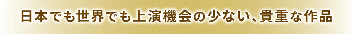 しかしこの愛すべき名作がオペラファンにもほとんど知られておらず、日本や世界で上演される機会は非常に少ないのが現状です。