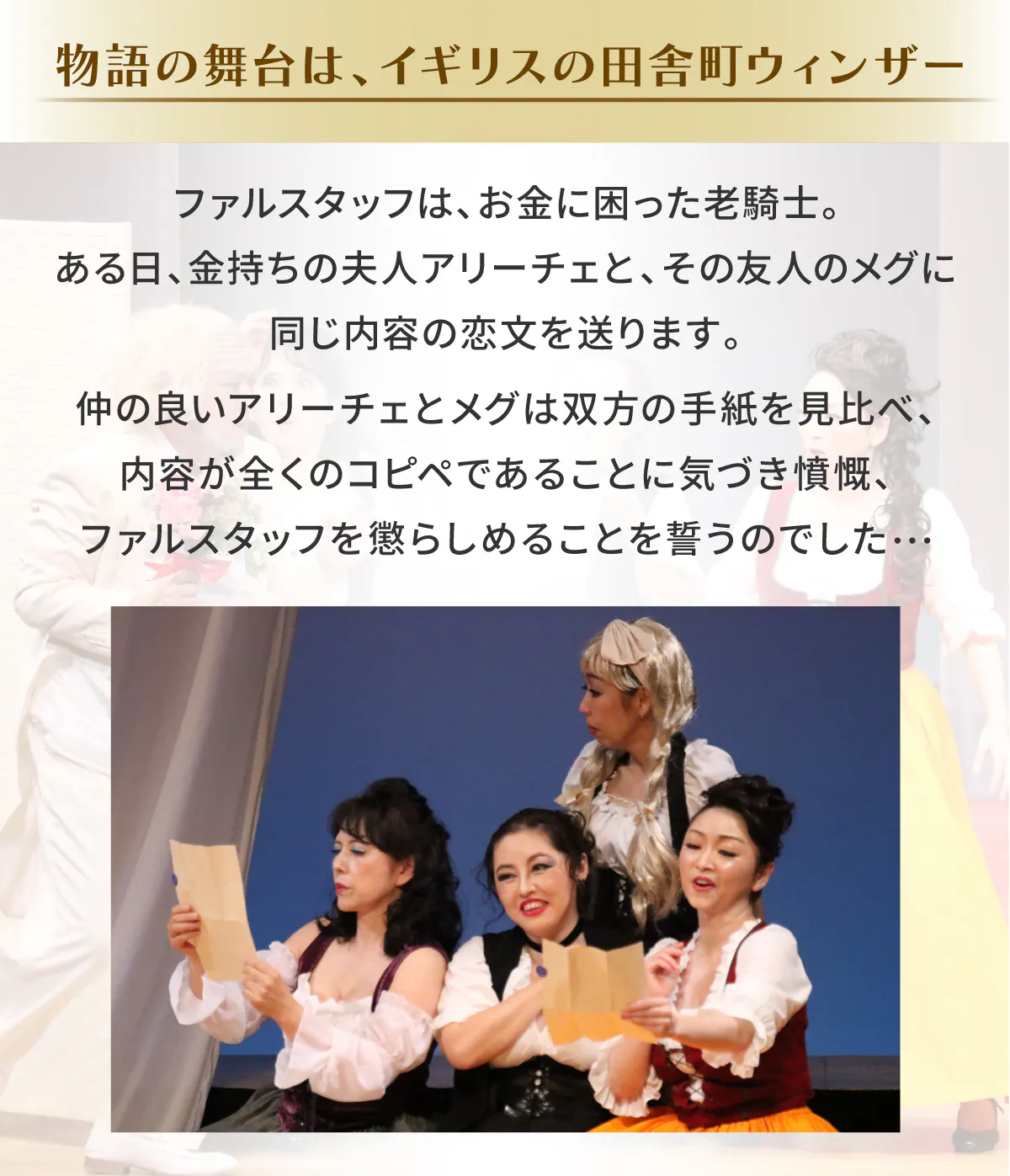 まったくのオペラ初心者の方にも「ファルスタッフ」の面白さ、オペラの楽しさを味わっていただけます。
