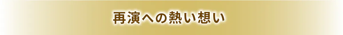 前回の感動を再び、いやそれ以上のものを届けたい。