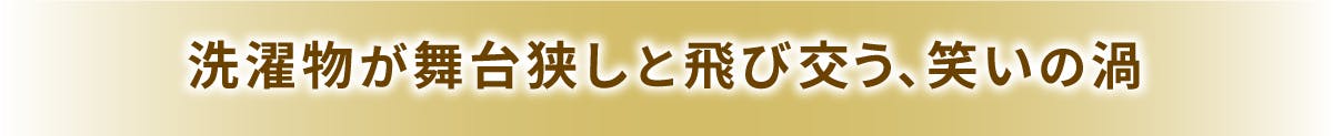 舞台上を舞い踊る大量の洗濯物の中、それぞれの思惑を胸に、ドタバタな大混乱が繰り広げられます。