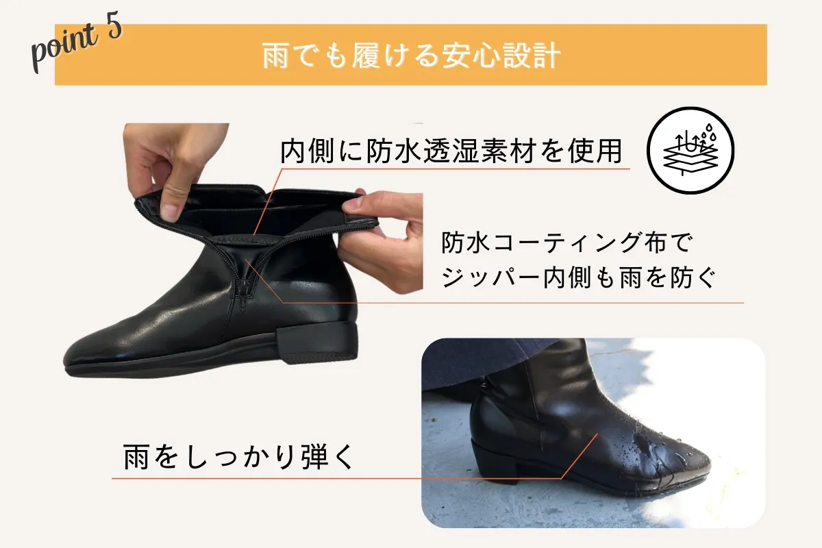 雨でも安心して履いていただける仕様を加え、生活のさまざまなシーンに寄り添います。