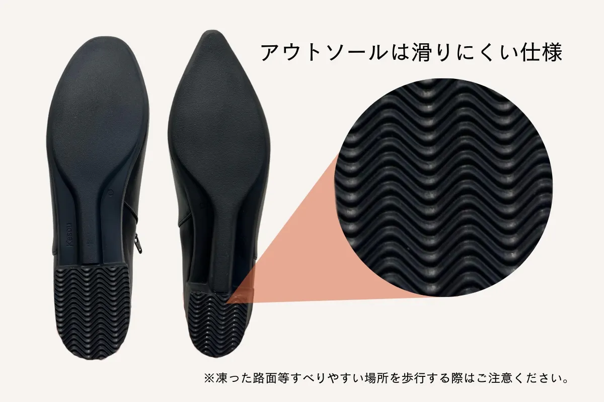 地面からの衝撃もやさしく、ヒールの高さを感じないほどの歩きやすさです。