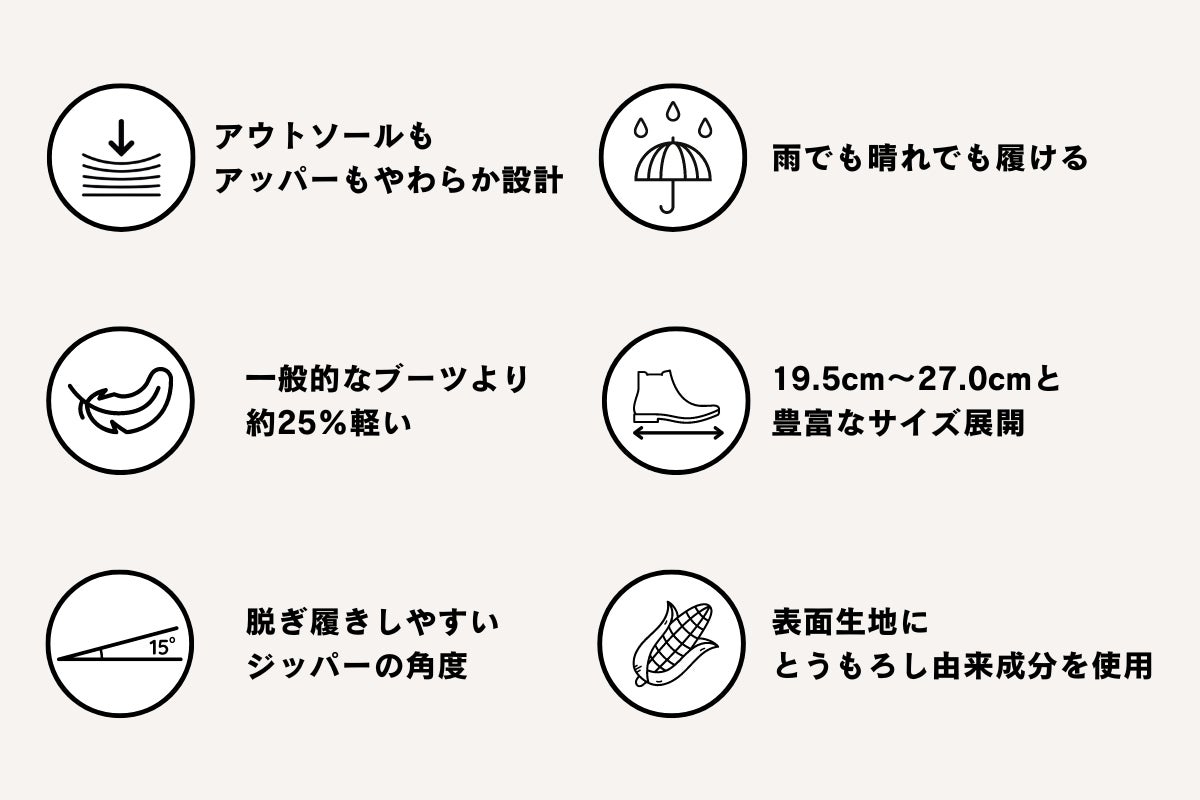 そしてサステナブルにもこだわった「とうもろこしから生まれたKesou晴雨兼用ブーツ」が誕生しました。