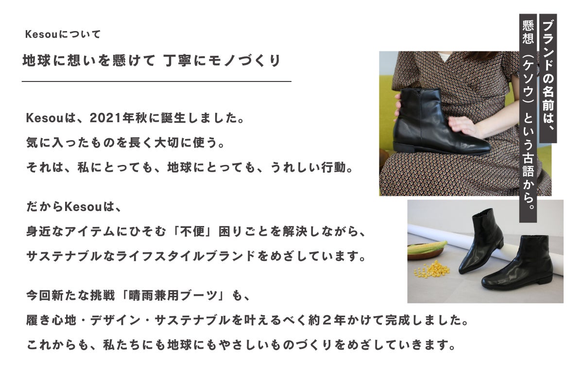 そんなKesouの新たな挑戦「晴雨兼用ブーツ」がデビューいたしました。