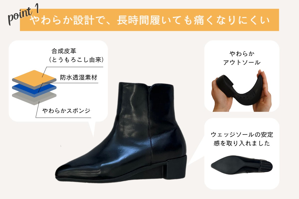 足あたりがやわらかく、軽く、脱ぎはきしやすい工夫を重ね、「まるでスニーカーのような履き心地」を実現。