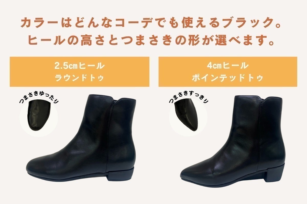 「歩くのらくちん」ラウンドトゥ×低めヒールと、「すっきりキレイ見え」ポインテッドトウ×高めヒールの2種類ご用意。