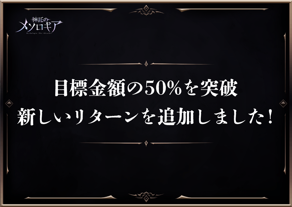 現在進行中の『神託のメソロギア』クラウドファンディングに、温かいご支援をいただき感謝申し上げます。おかげさまで、目標金額の50%を突破しました!