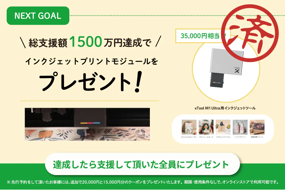 ご支援額2,000万円達成で、ご支援者様全員に¥4,050円相当のインクジェットプリントヘッド・カートリッジをプレゼント!!!