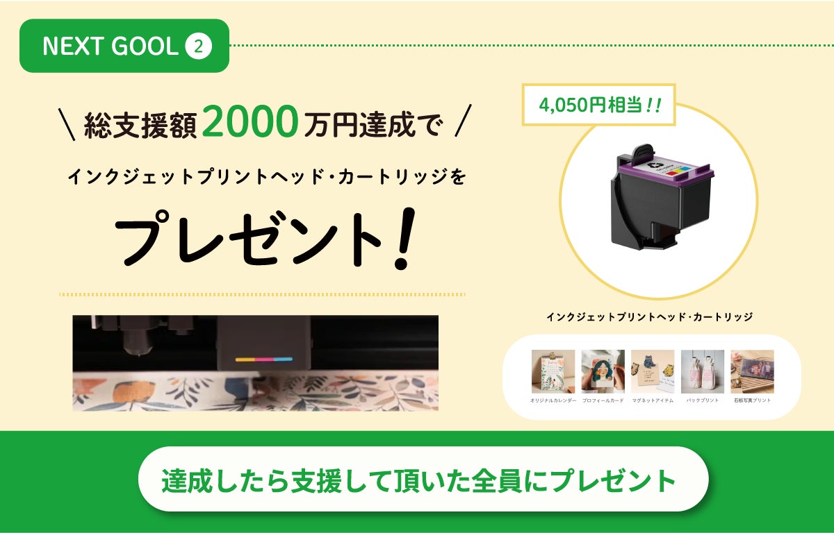 達成すると、ご支援者様全員にご支援者様全員に¥4,050円相当のインクジェットプリントヘッド・カートリッジをプレゼント!!!