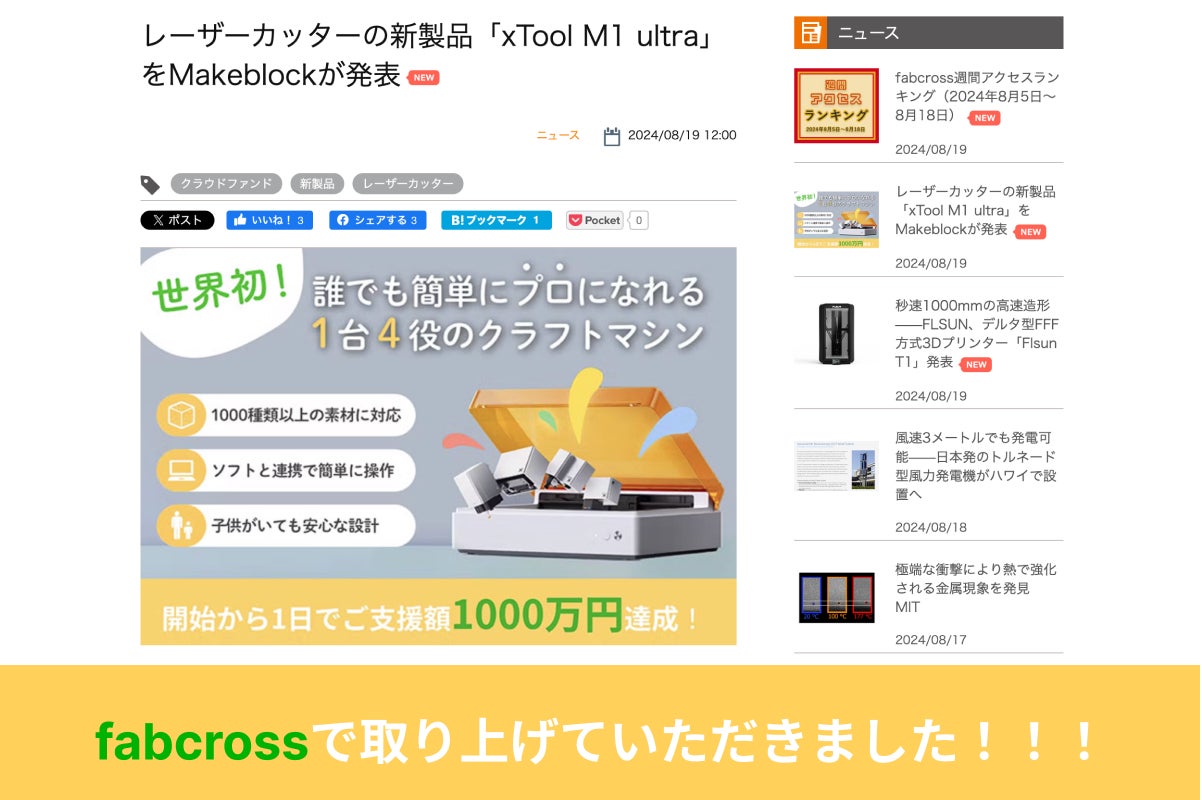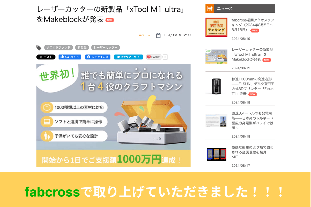 ものづくり特化型の情報サイト、fabcrossでM1 Ultraが取り上げられました!