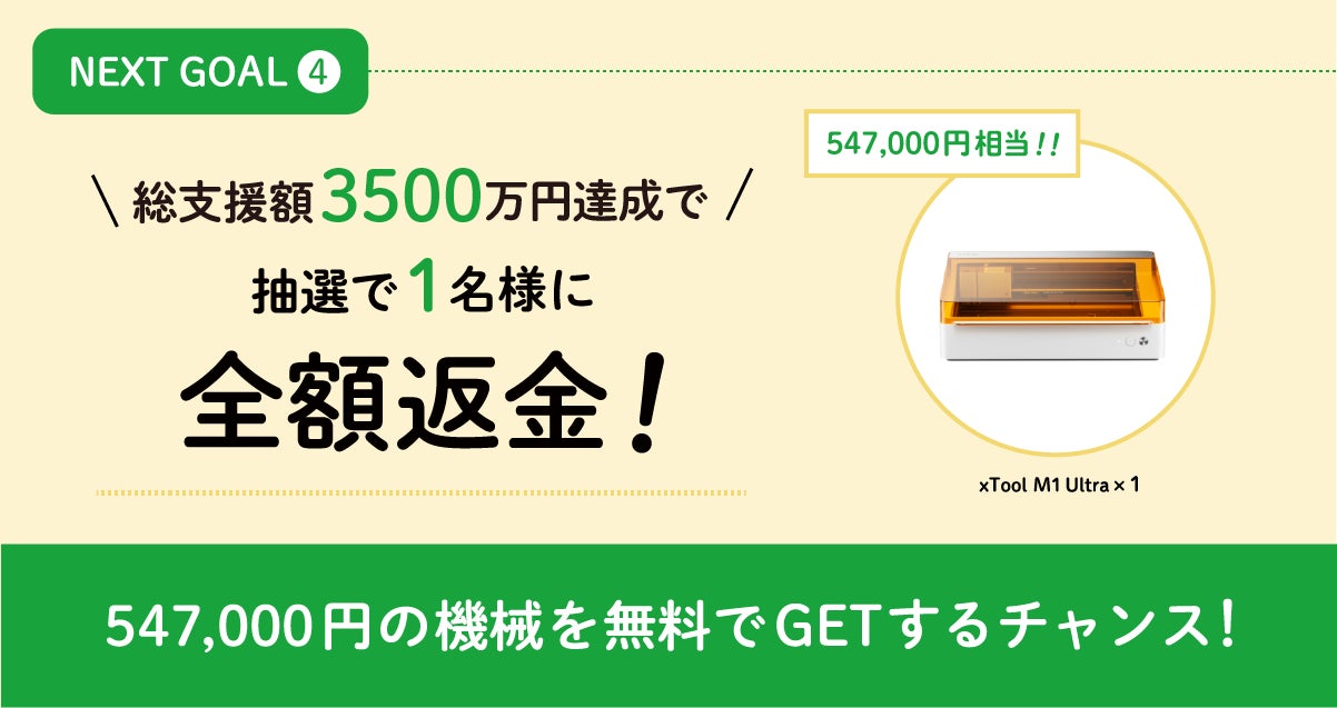 ネクストゴール3,5000万円を達成しますと、抽選で1名様に全額返金いたします!!!