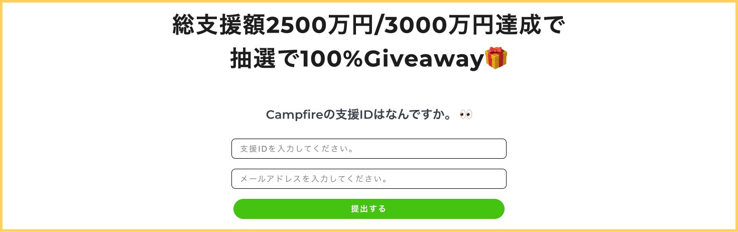 ②「支援ID」と「CAMPFIREに登録のメールアドレス」を入力