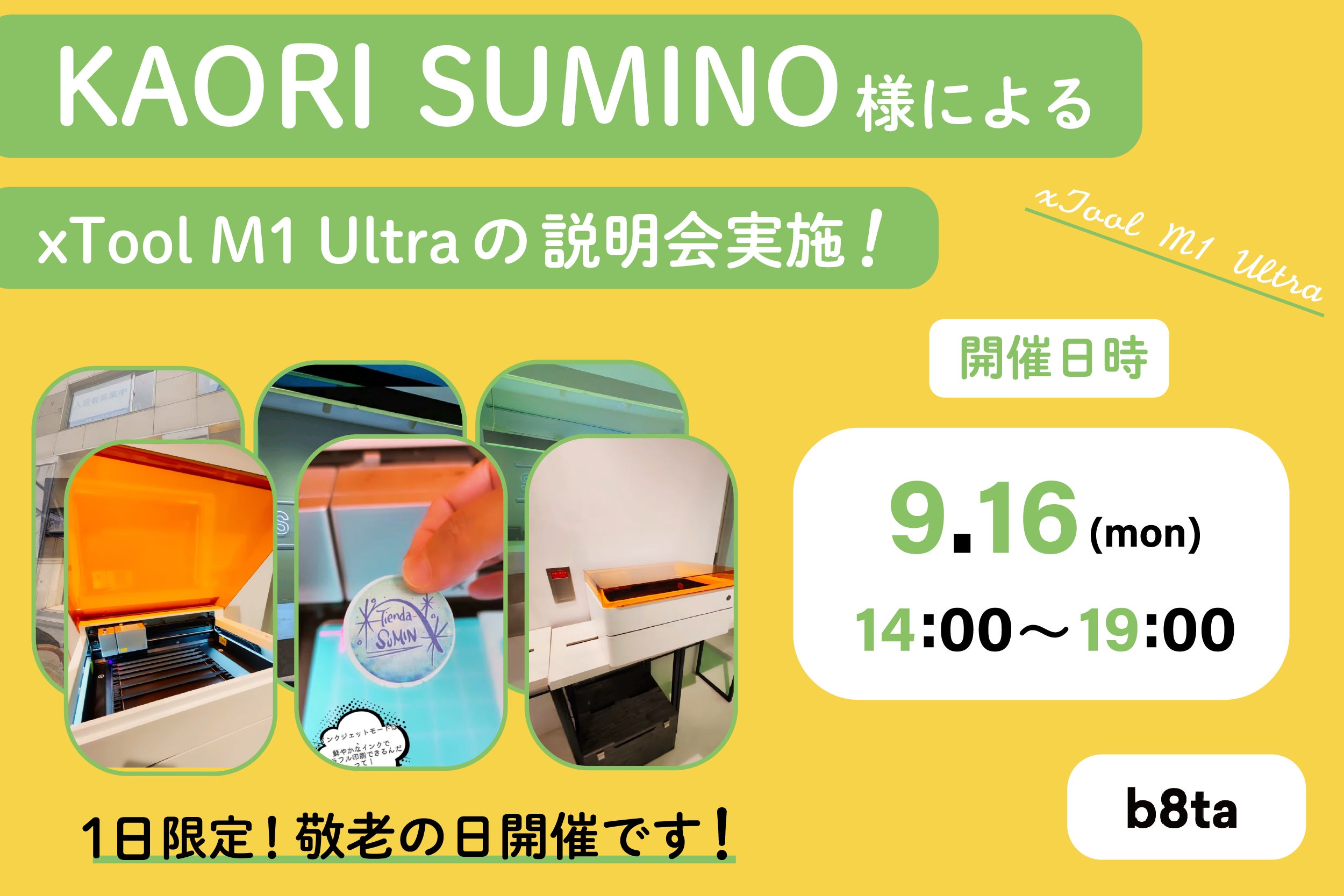 9月16日(月)14:00〜19:00、B8ta店舗にて、インフルエンサーのKAORI SUMINOさんによるM1 Ultra説明会&相談会を開催いたします!