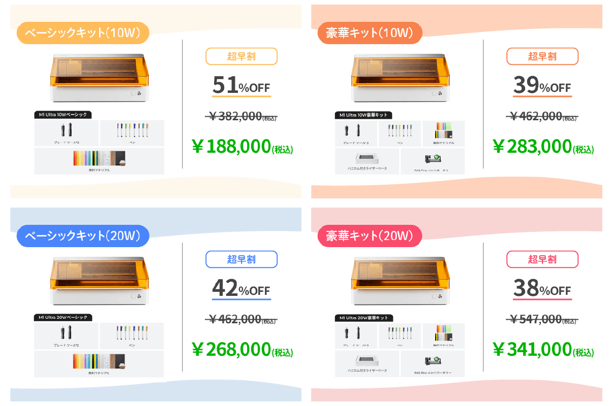 2024/09/30 18:00M1 Ultraをご検討中の皆様、ご支援者様、M1 Ultraプロジェクトもいよいよ残り6時間となりました。泣いても笑ってもこれが最後!!!CAMPFIREだけの特別価格&先行価格での販売で、購入できるのは本日23:59分までです!ご検討状況はいかがですか???この機会を見逃すと、この価格で購入することはできないかも知れません!!!✔︎アイデアをスピーディーに形にしたい!✔︎低コストでオリジナルグッズやノベルティを作りたい!✔︎子供たちの創造性を育む教材として活用したい!✔︎より簡単に、安価に、素早くモックアップを作成したい!✔︎名前、オリジナルキャラクターを印字したい!これらに当てはまったら、この一期一会の機会に支援するしかないです!!!!プロジェクトが終了した後に後悔をして欲しくないので、もう一度お知らせします!M1 Ultraの先行価格での販売は本日23:59分までです!これが本当のラストチャンスです!気になっている方は今すぐ下のリンクから支援しよう!!チーム一同 もっと見る