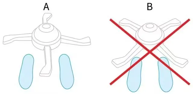 A9.1本の脚を挟んで、両足を床につけた状態で使用すると、倒れる事故を防ぐことができます。サドルチェアに座るときは、足の位置を図Aのように使用することをお勧めします。製品仕様の下にある使用上のご注意のA、Bの画像をご確認下さい。