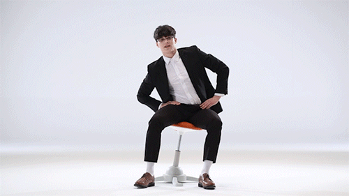 雲のイスはバランスボールに座っているように自然と正しい姿勢に整えることができ、背もたれがない状態でも、腰をそっと支え姿勢を安定させます。