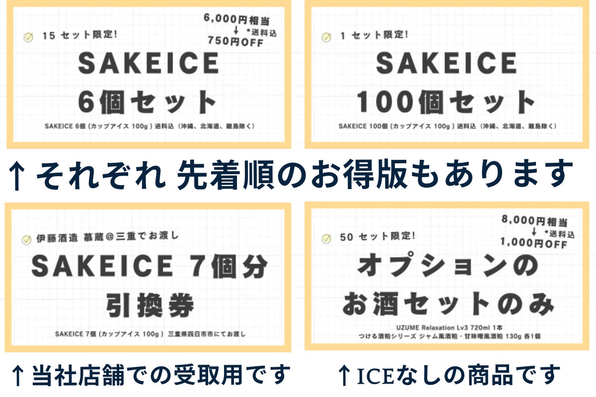 ※SAKEICEはアルコール分を含むアイスクリームです。そのため、20歳未満の方はこのリターンを選択できません。
