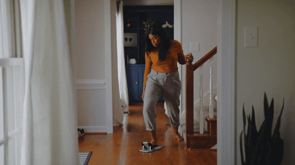 DorsiFLEXは、底部の滑り止めリングがどんな床面でもしっかりとグリップし、靴下を履いた足でも裸足でも快適なパッド入りのベースを実装しています。