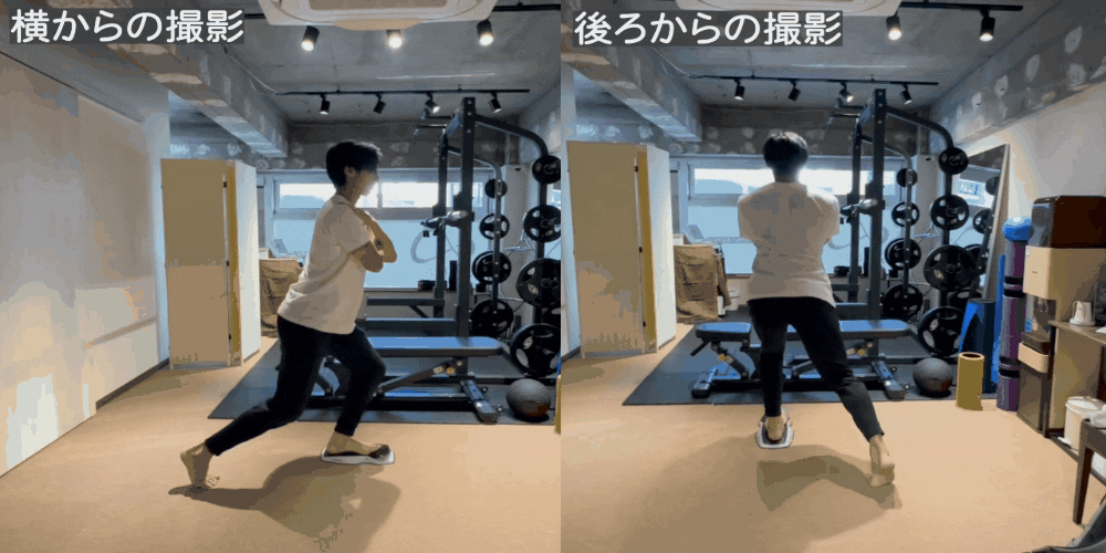 *ポイント:3秒で下し2秒で上げ、10~15回を1セットとして繰り返しましょう。前脚がメインとなるトレーニングなので両脚行ってください。