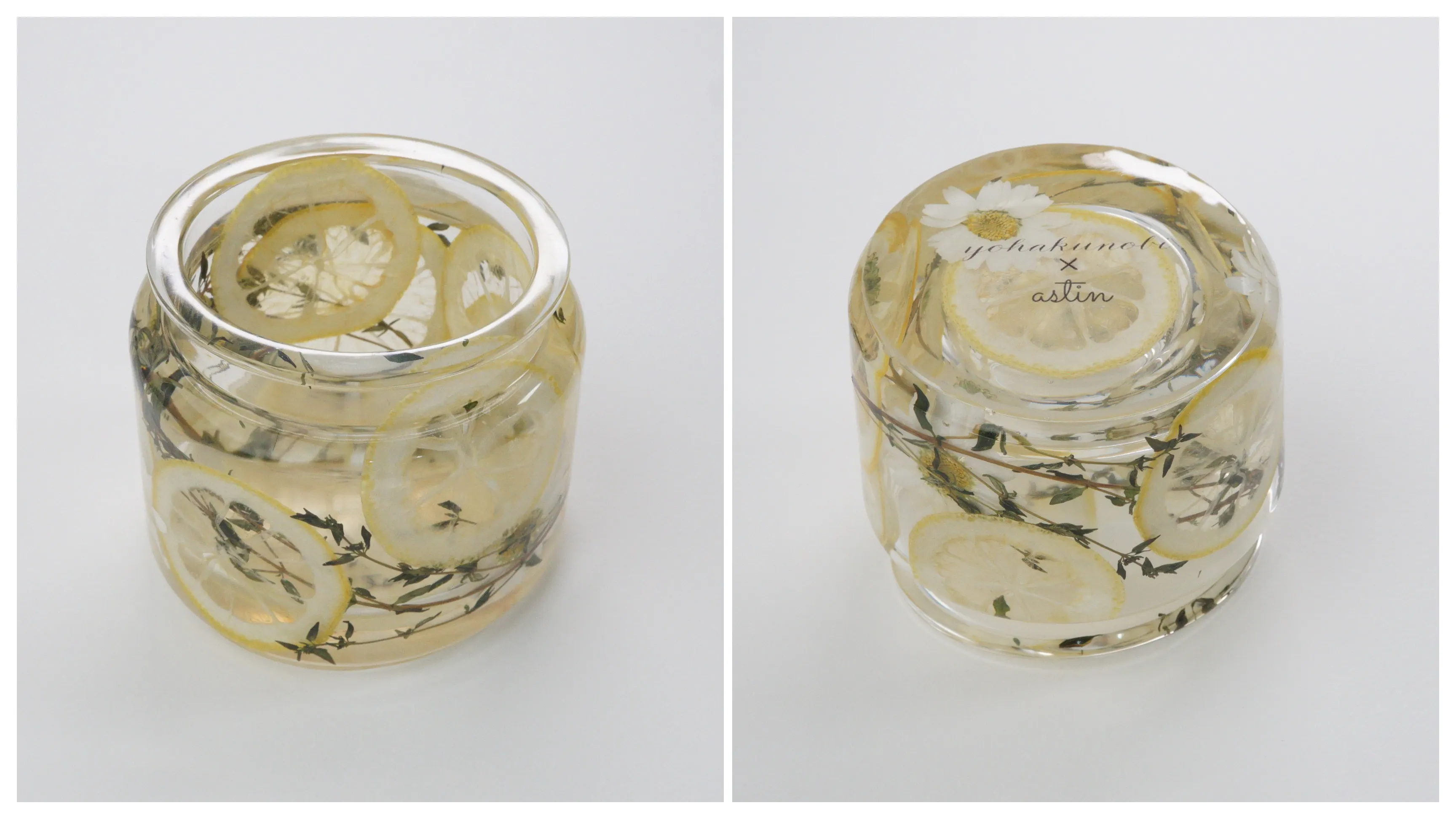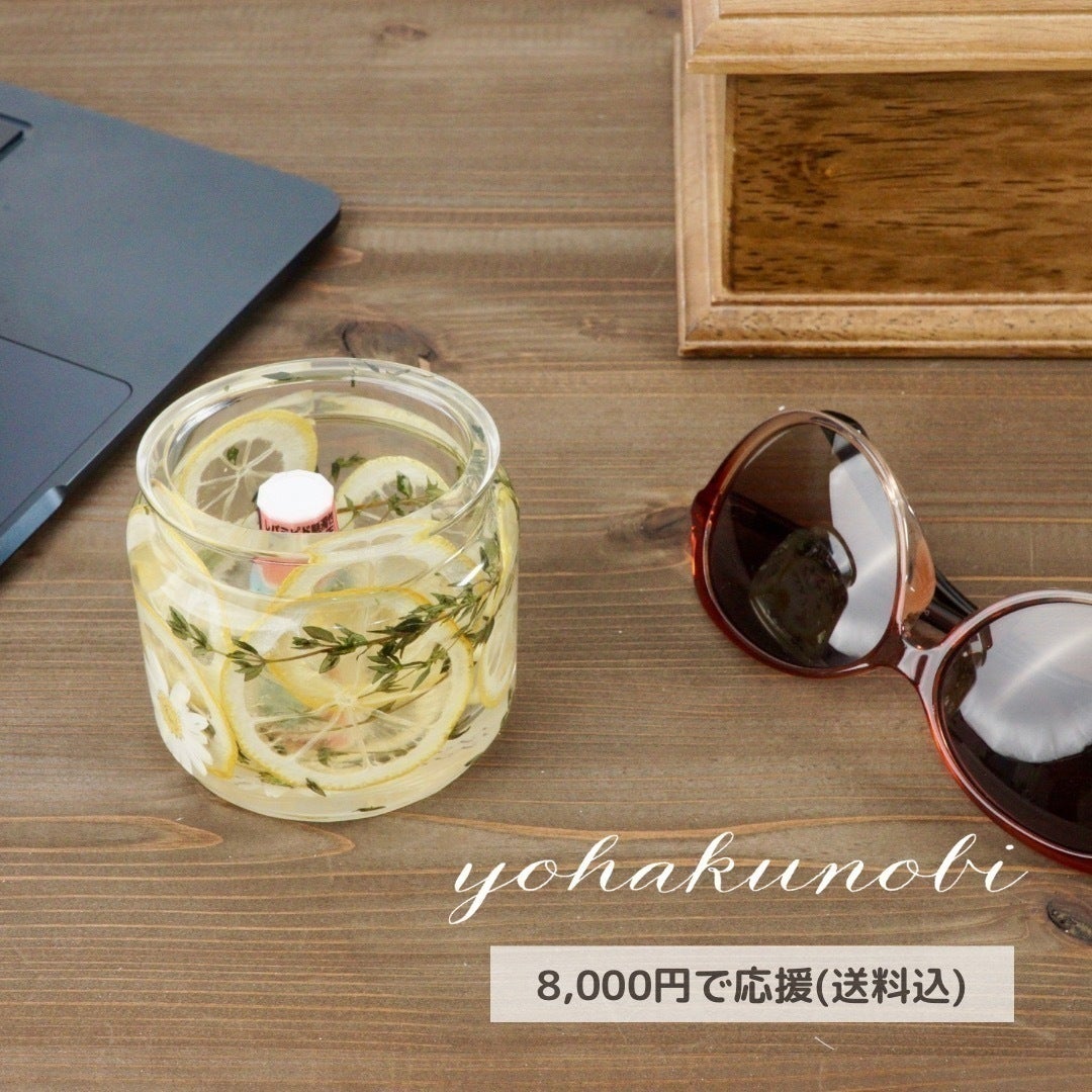 本物のレモンとお花を押し花がレンジに埋め込まれているビンです!レモンが入ってるビンなんて、見たことないですよね?クリエイターさんが一つ一つ手作りしているので、世界に一つだけのデザインです。