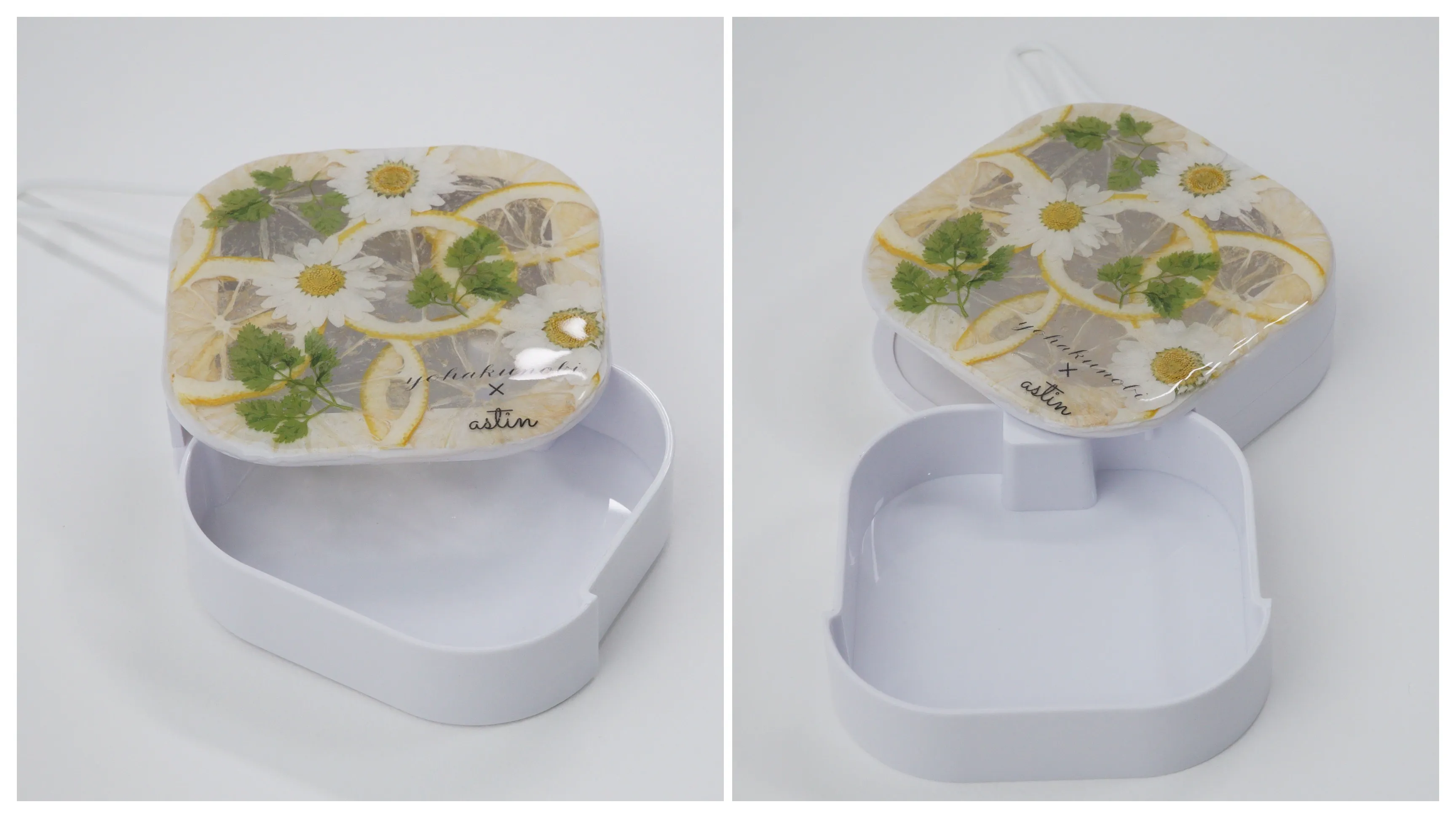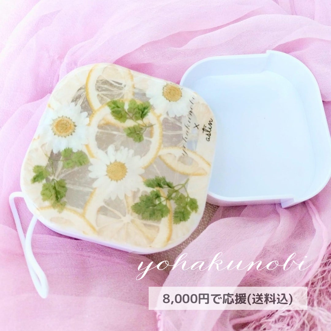 まるで、小さな絵画を持ち歩くような作品です。バッグの中に入れて持ち運びが出来るので、バッグの中で目薬が迷子になることがありません!ケースの中には目薬以外に、小さなキャンディを入れたりできますね。自分を労る自愛BOXのように使うのも、おすすめです。いつでも一緒に持ち歩けば、本物のレモンからエネルギーをもらえそうです。ストラップが付属してますので、掛けることも可能です。
