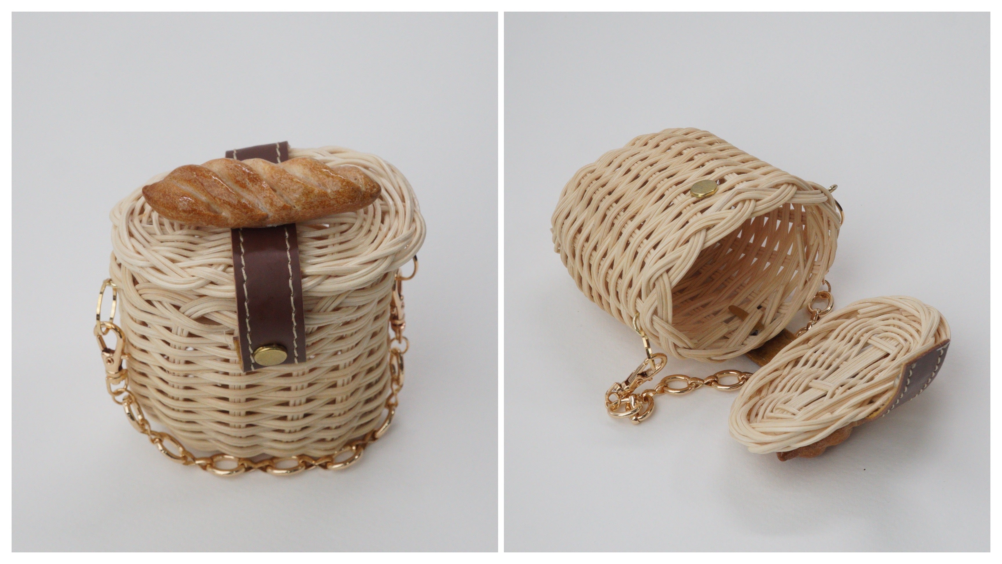 こちらは、ミニチュアのバゲットがついたカゴタイプです。特徴は、なんと言ってもバゲット!!クリエイターさんが、本物のパンの素材で作っていますので、リアルです。カゴももちろん手編みです。カゴにバゲットって?というその意外性が、人目を引くこと間違いないです。きっと、そこから誰かと会話が始まり、コミュニケーションが生まれるでしょう!