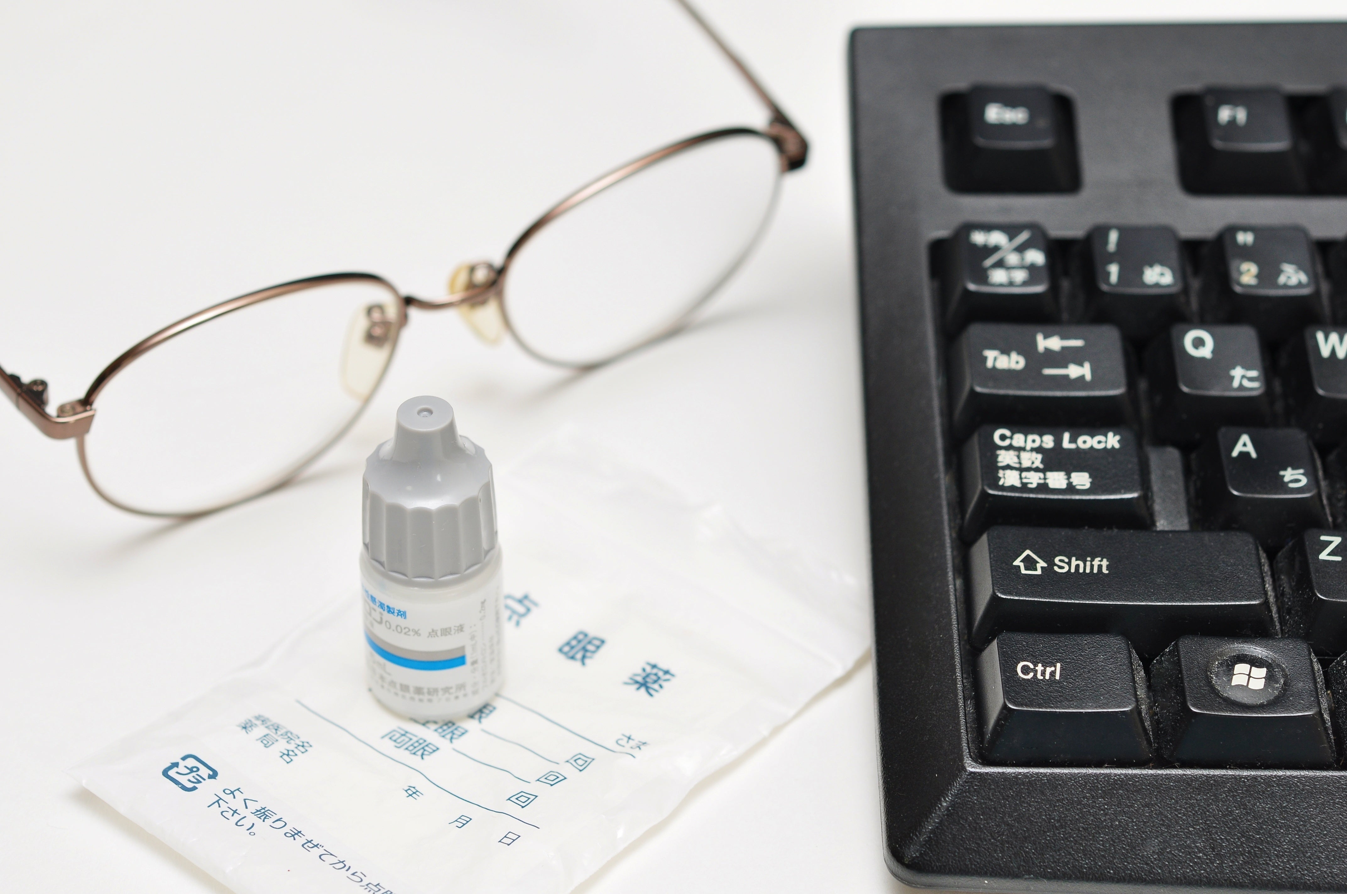 目を使いすぎて乾く場合、潤い用の目薬を頻回につけると、効果があることが多いです。