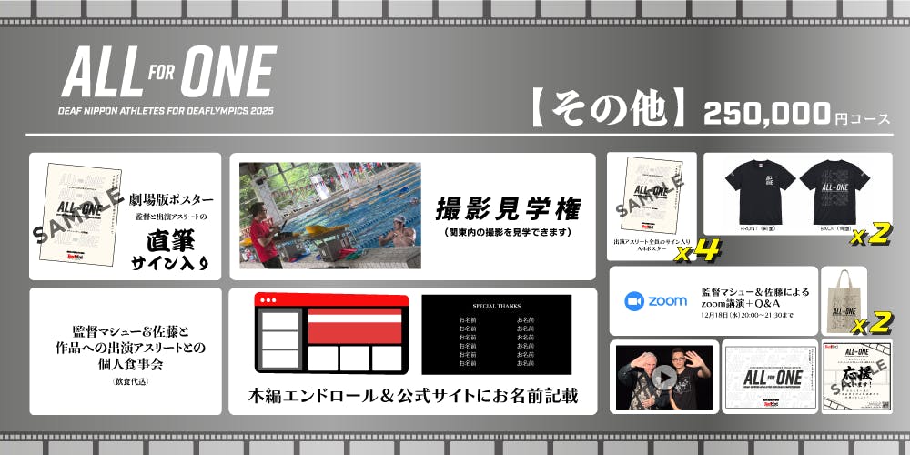 『ALL FOR ONE』は、教育的な作品であり、ドキュメンタリーを通してデフアスリートに関する新たな世界を発見し、デフリンピックにおける課題やメッセージを伝えることで、デフアスリートへ理解が深まる作品を目指します。