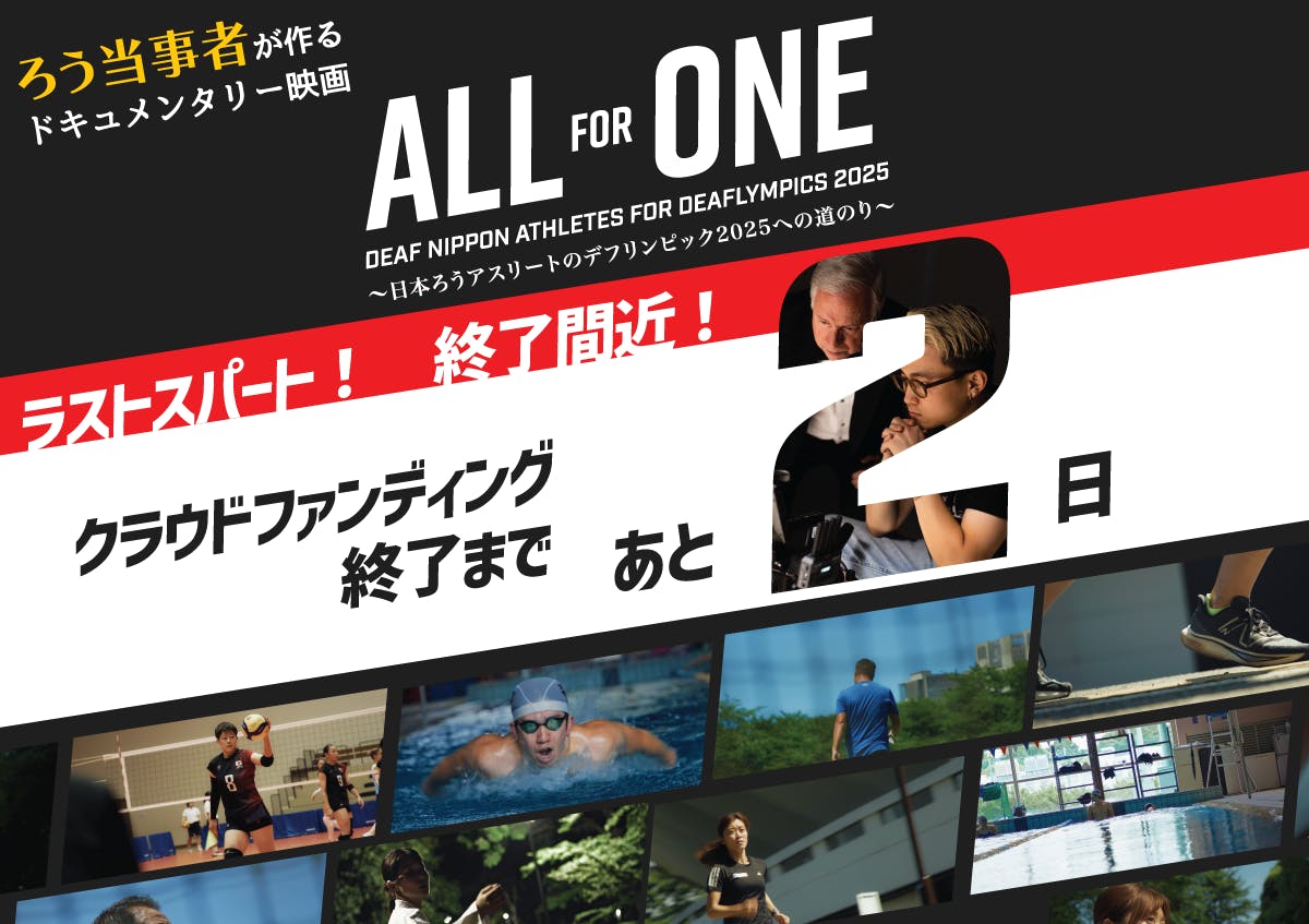 デフアスリートに密着したドキュメンタリー映画『ALL FOR ONE』クラウドファンディング終了まであと2日となりました!