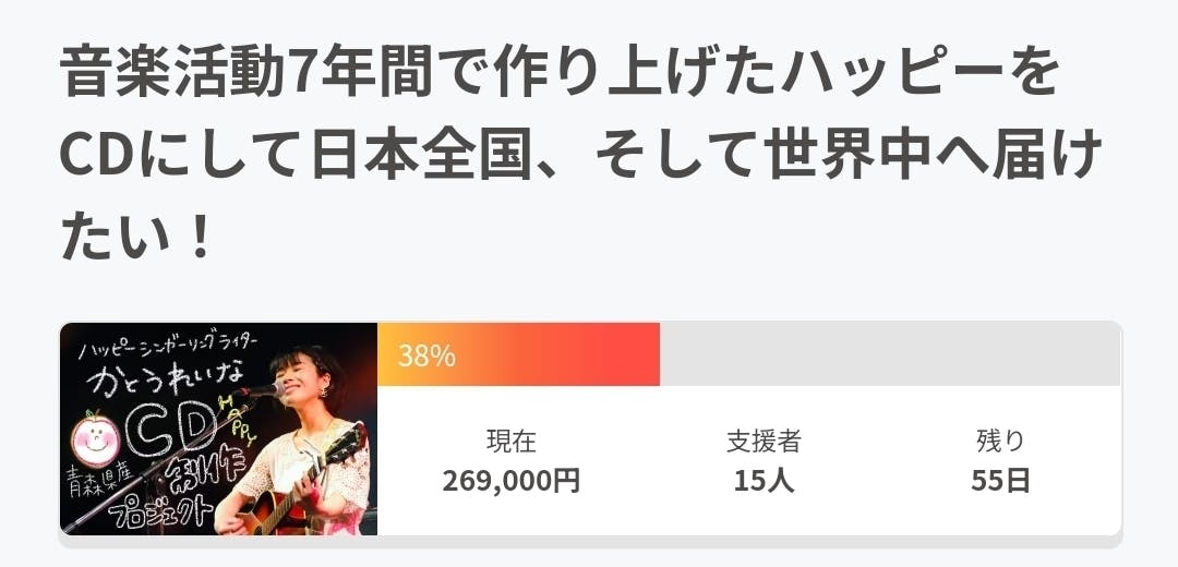 おはようございます!なんと!朝起きましたら【38%】達成∩( ´∀`)∩15枚のハッピーになってました!びっくり&とってもうれしいモーニング!応援ありがとうございます!