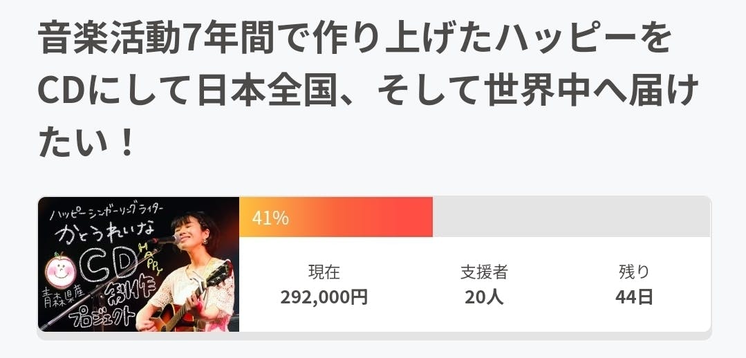 なんと本日クラファン【41%】達成!20枚のハッピーを届けられることになりました!ご支援くださり本当にありがとうございます!!まだまだワクワクを届けて、ハッピーを広げていきたいので、ここからまたどうぞよろしくお願いいたします*・ω・)ノ