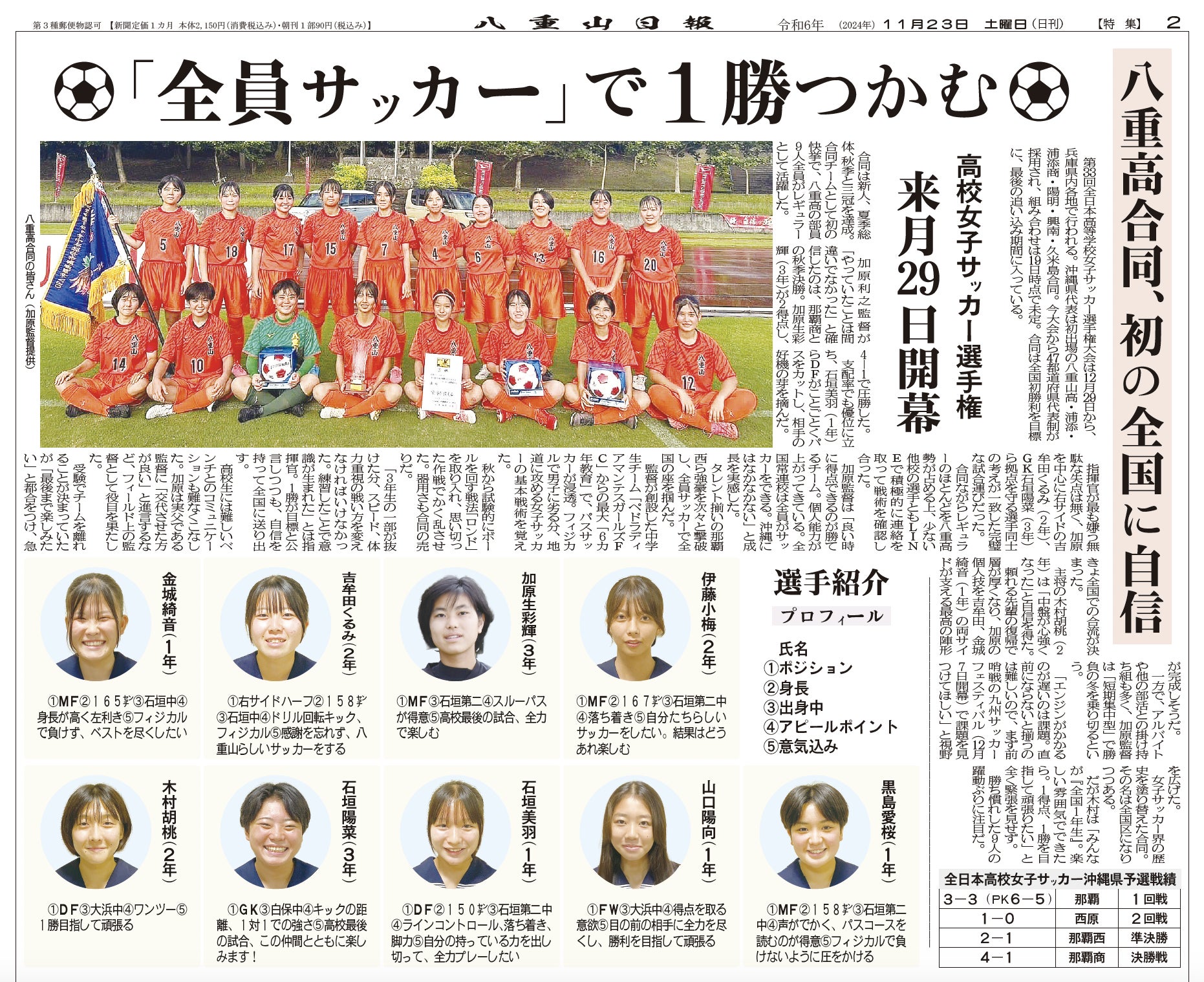 2022年創部 沖縄県立八重山高校女子サッカー部