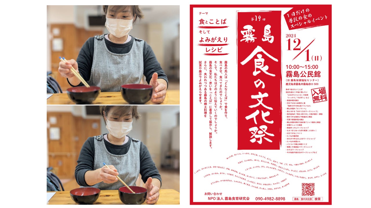 2024年12月1日(日)、第19回霧島食の文化祭です。私も「きな粉作りワークショップ(石臼で大豆をきな粉にする)」と、「箸使いワークショップ」を手伝う予定です。写真は、箸使いワークショップの練習。NPO霧島食育研究会理事長の千葉しのぶさんに撮ってもらいました。思えば15年前になるのかな。まだ鹿児島県職員だった頃、(自分で申し込んだんだけど)人事課から、第5回食の文化祭を「手伝いに行きなさい」って研修命令が出て、どんな人たちがやっているのかリサーチに出かけます…みたいな感覚で、千葉しのぶさんの講演を聞きに行きました。『食べ物にはドラマがある』ってタイトルで、私は当時、ヤンキー達の更生施設≒児童自立支援施設に勤務していたこともあって、大変良い話を聞いたと思いました。千葉さんの印象は「品の良いオバちゃん」でした。当時はこんなにビックな人になるとは思っていなかったです。そしてビックになった今も、良いオバちゃんです。15年前、ちょこちょこNPO霧島食育研究会に顔を出し、「茶一杯(ちゃいっぺ)飲んで行きなさい≒怪我をしないように、茶を飲んで心を静めよ…という薩摩の教え」で直ぐには帰れず、くっちゃべっていました(お喋りしていました)。ちょっと風変わりな若者たち(マルメン工房の増田君とか、今は里山自然学校を手伝っている兼吉君とか、後には鹿児島県職員になった濱田君とか、コミュニティ大工の加藤さんとか)に出会う場所でもありました。きっと彼らの方が私の事を「絶対に変な人(公務員)だ」と思いながら、それでも丁寧に接してくれていたと思います。15年前の「霧島食の文化祭」でご一緒した、茶舞台カフェの名物おばあちゃんは他界しました。その他にも、霧島食の文化祭に行けば会える…と思っていたご婦人たちの中には、他界した人もいます。名物おばあちゃん皆さん、立派に後期高齢者です。今年会える人が、必ず来年もいるとは分からない…そんな思いで、第19回霧島食の文化祭を手伝っています。クラウドファンディング終了まで、あと8日です。応援して下さい。頑張ります。