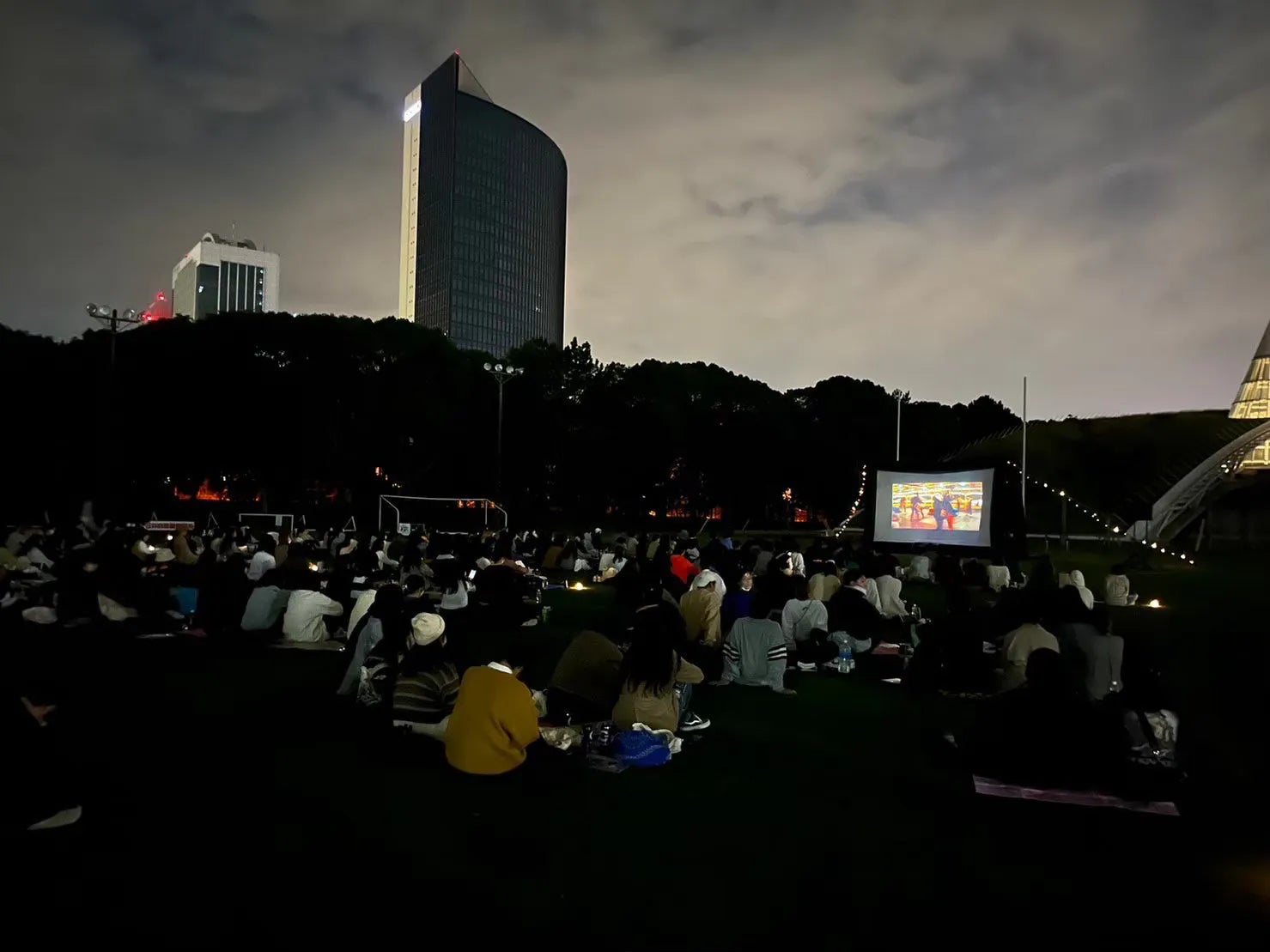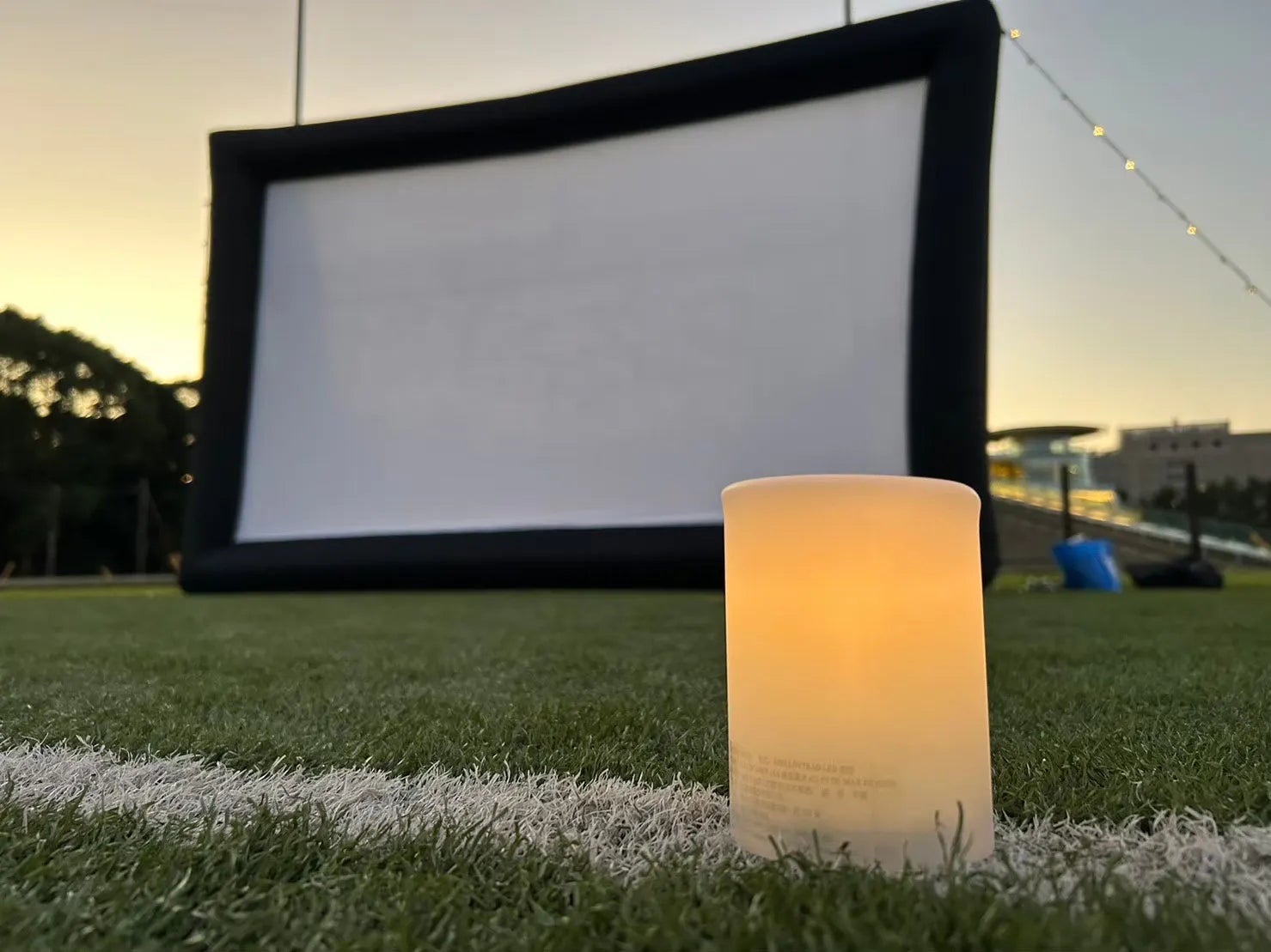 私たちは広大なキャンパスの一部、人工芝生グラウンドでの野外映画開催を目指し、日々奮闘しています。