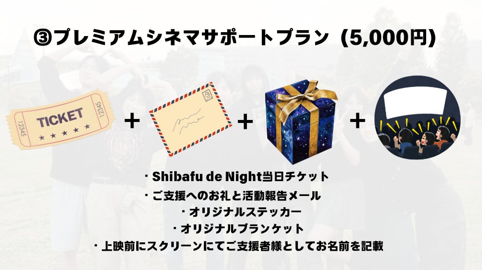 Shibafu de Night 2024 は入場無料で開催するものです。入場料を徴収する場合、映画の作品自体のレンタル費が膨大に膨れ上がってしまい、学生主体で野外映画プロジェクトを運営することが困難になってしまいます。非営利で本プロジェクトを運営するため、皆様からのお力添えを頂きたく存じます。どうぞよろしくお願い致します。費用が目標より多く集まった場合、上映空間をより良くするための会場演出・装飾費用に使わさせていただきます。
