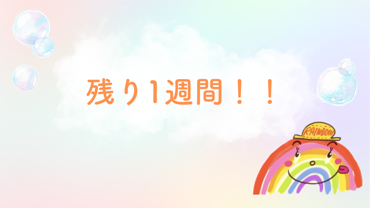 いよいよ終了まで残り1週間となりました!