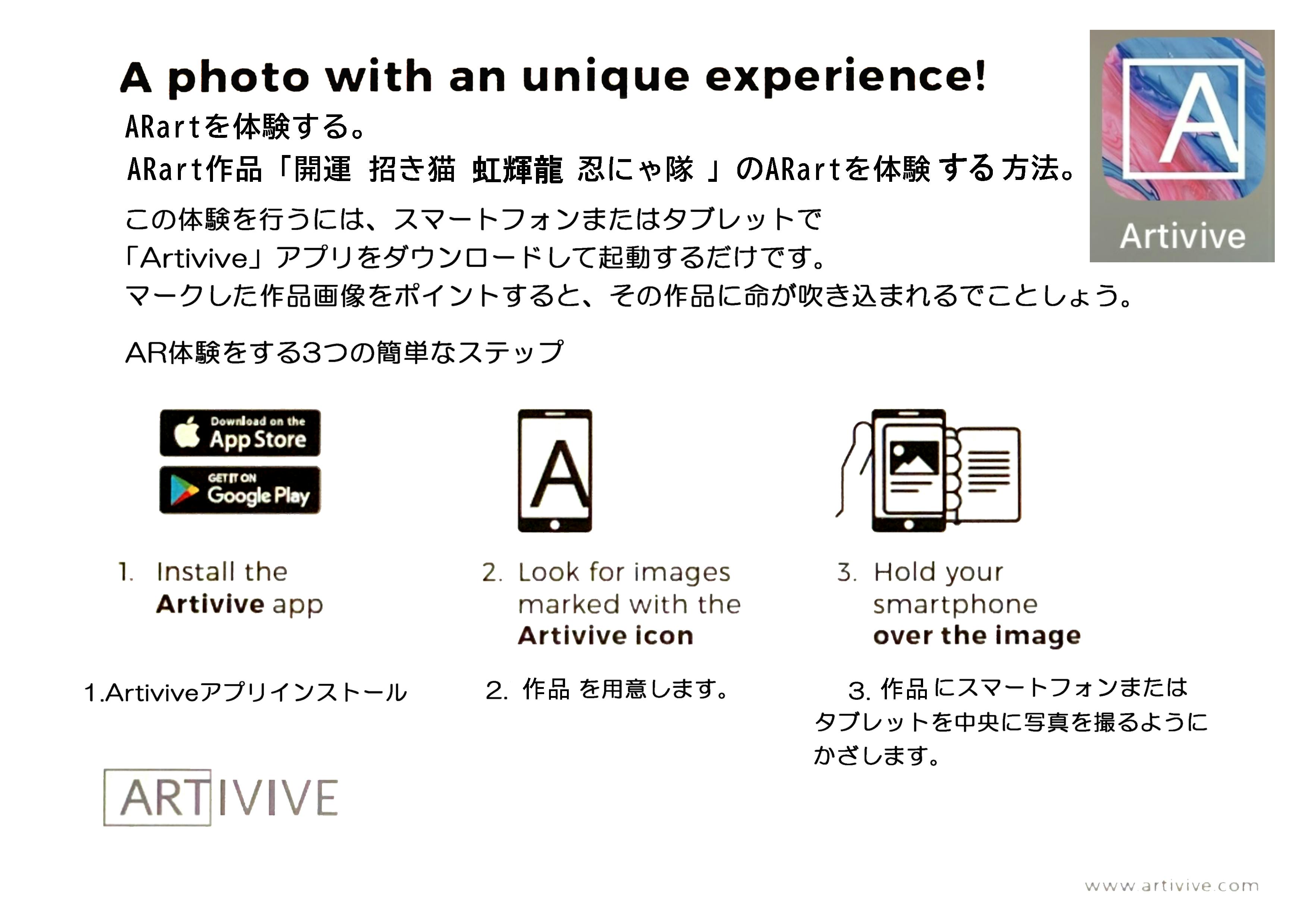 ※ ARアートをスマホやタブレット端末で体験するにはARアプリ「ARTIVIVE」をダウンロードする必要があります。