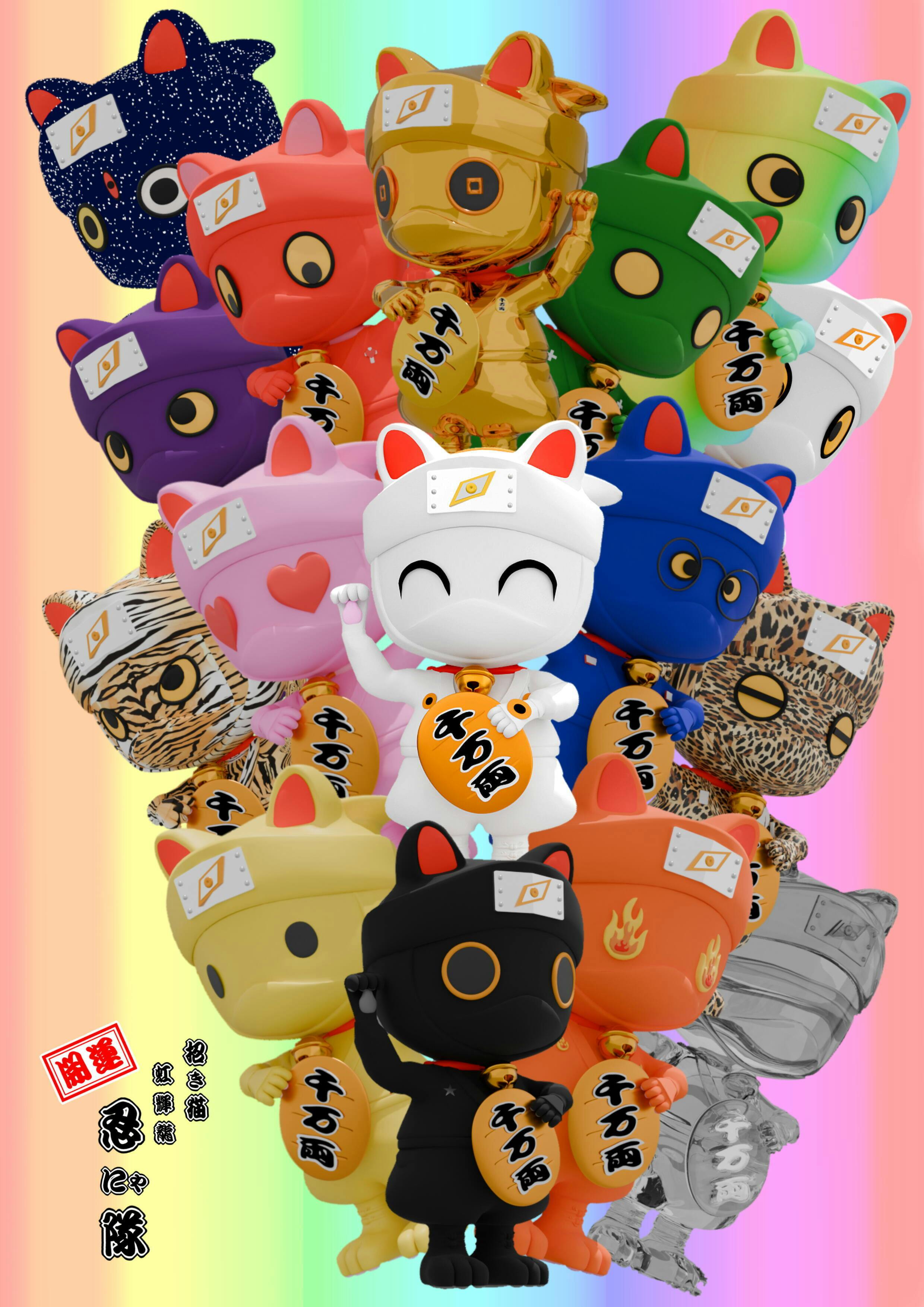 「開運 招き猫 虹輝龍忍にゃ隊」は、日本の伝統的な招き猫と忍者のコンセプトを融合したユニークな招き猫チームです。
