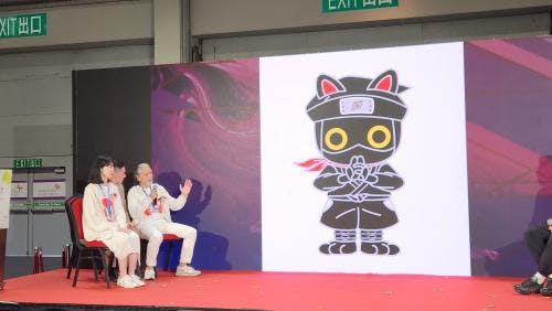 5月に開催された香港国際ARアートフェア2024にてARアート作品「開運 招き猫 虹輝龍忍にゃ隊 くろまる」のプレゼン風景