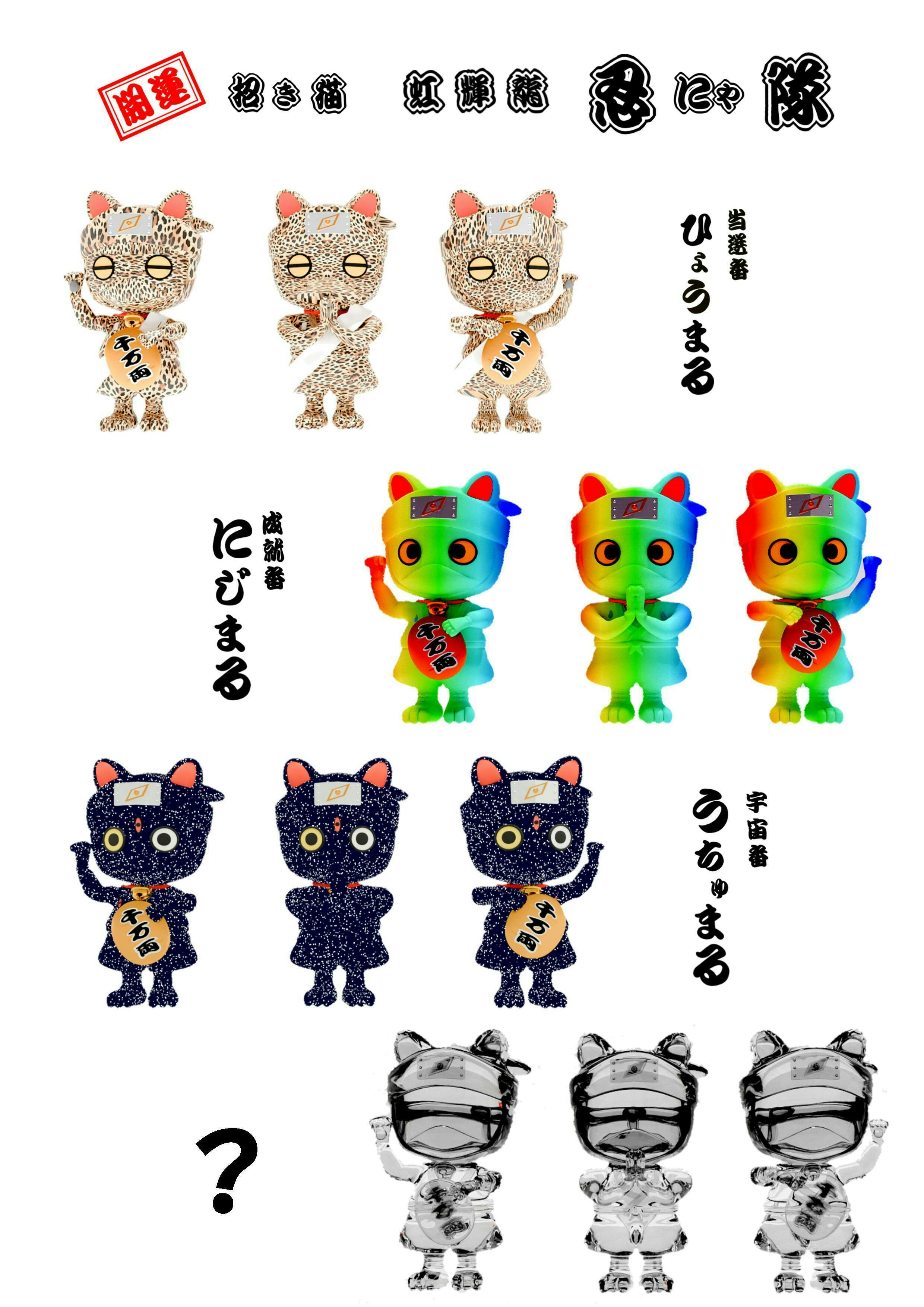 「招き猫 虹輝龍忍にゃ隊」ベーシックシリーズにはノーマル32種+シークレット16種48種類あり、今後もバリエーションを増やしていく予定です。