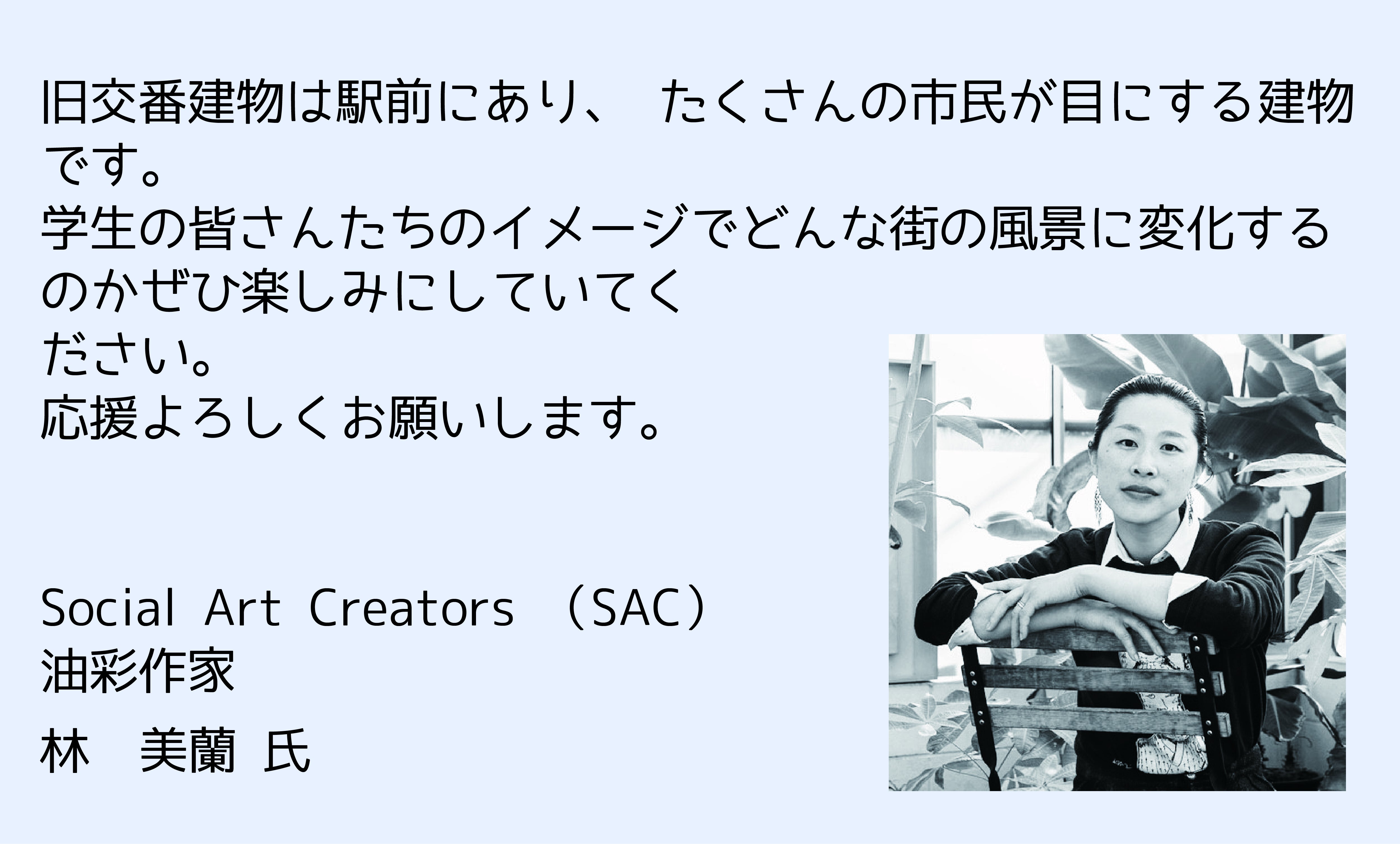 中学生を中心とした住民主体で公共の建物外壁に絵を描くことで、景観が明るくなる上、公共物への関心、地元への関心を高め、ひいては郷土愛を育むことに繋がると考えています。