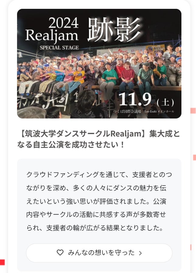 この度、Realjam SPECIAL STAGE「跡影」のプロジェクトが、CAMPFIRE様の11月月間アワードを受賞いたしました!