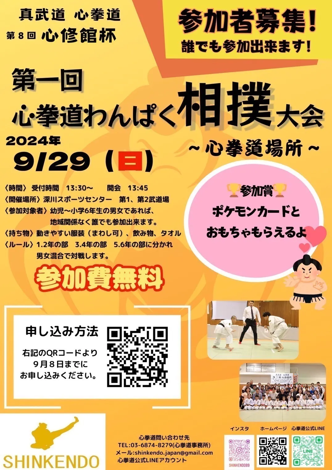 2024年7月 心拳道わんぱく相撲大会参加者募集開始(7月下旬時点で数十名の申込みあり)、協賛募集開始