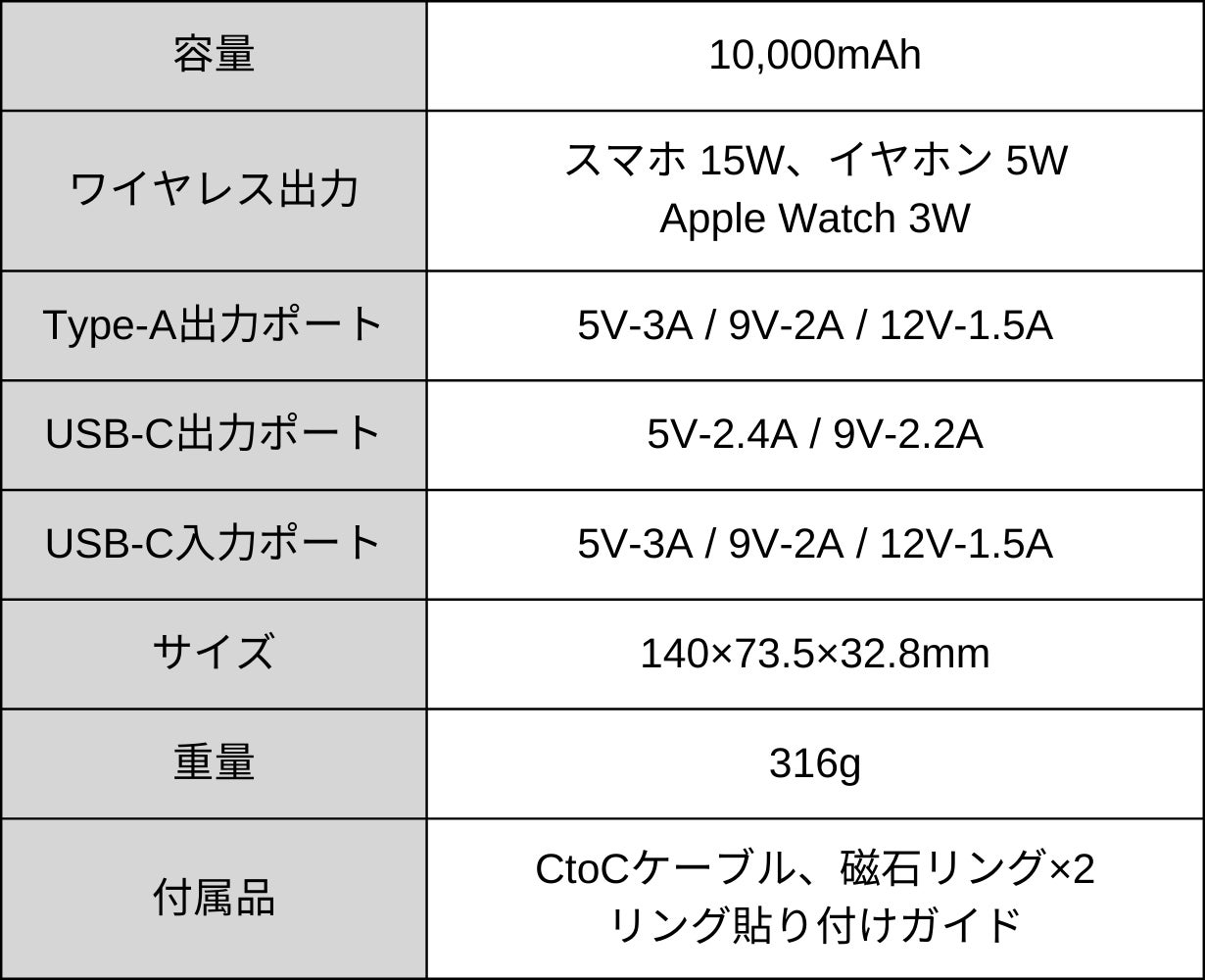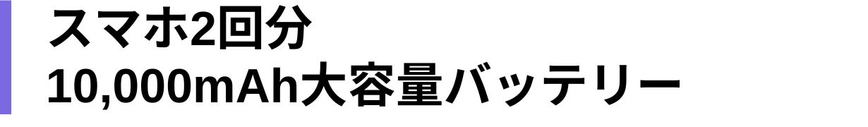 10,000mAhの大容量バッテリーを搭載。3つのデバイスをまとめて充電しても、全てフル充電できます。