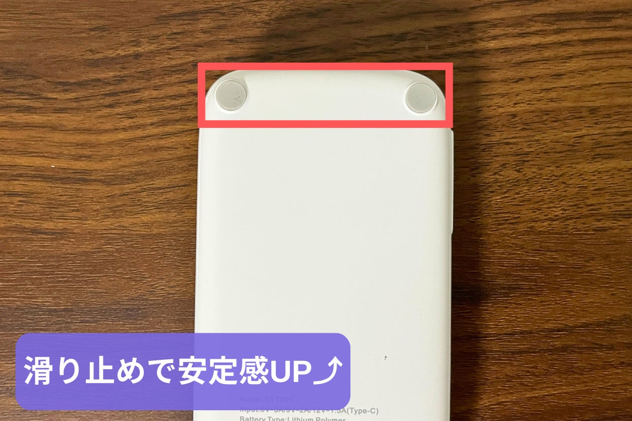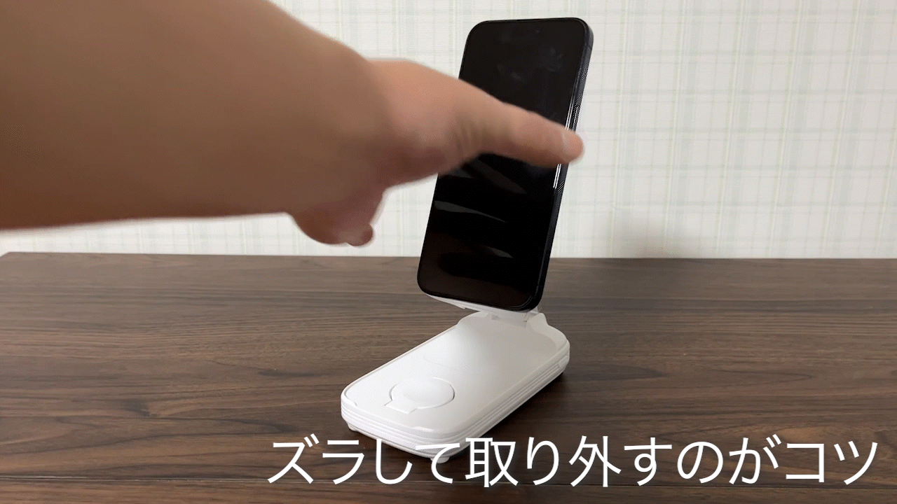多くの滑り止めが無いMagSafeスタンドは、スマホがくっついて、片手で取り外すのは難しいです。SKP001の底面には滑り止めがついているので、片手でもスマホの取り外しが簡単です。