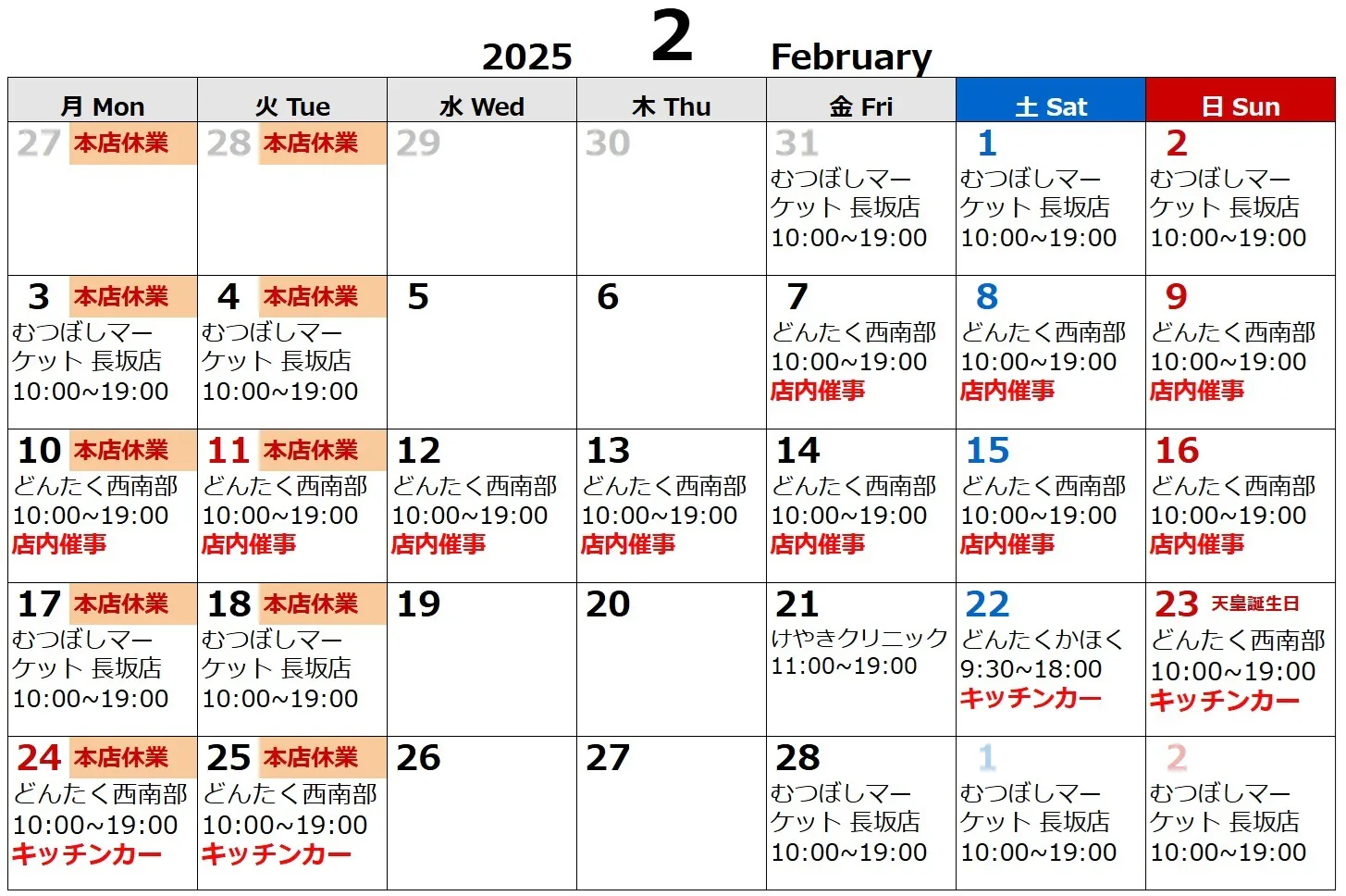 はるまき家の2月のスケジュールが確定しました