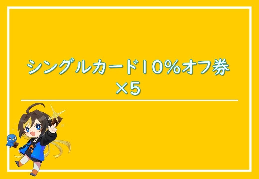 ★当店にて買い物をする際、ご提示いただければ一度だけ合計金額から10%お値引きでお買い物ができる券を5枚ご提供致します。 10万でも100万でも10%オフになります。 ※中古カードに限ります(新品のパック・サプライは含みません)